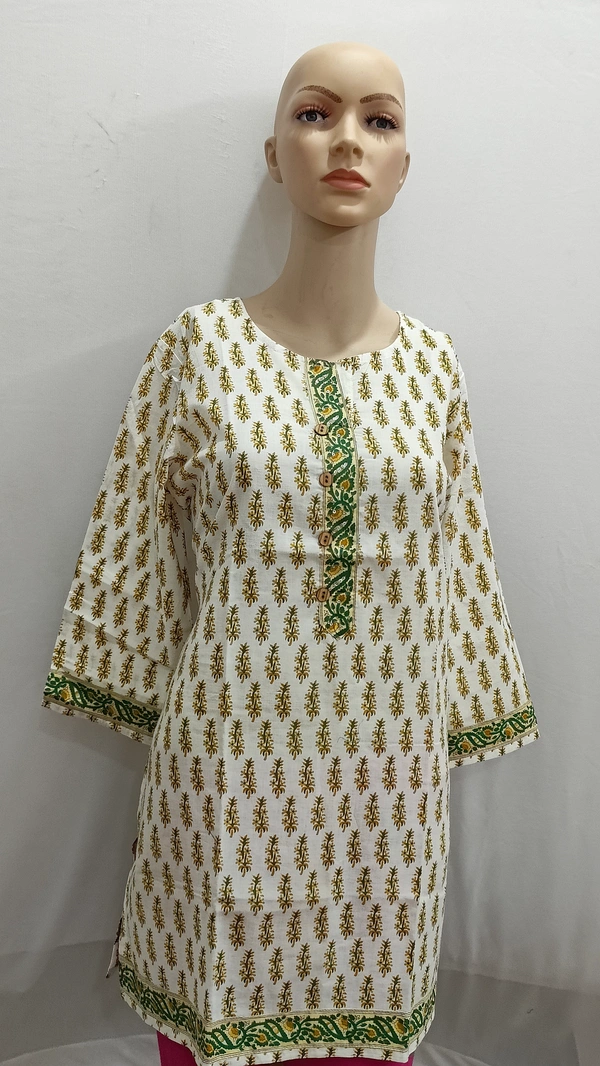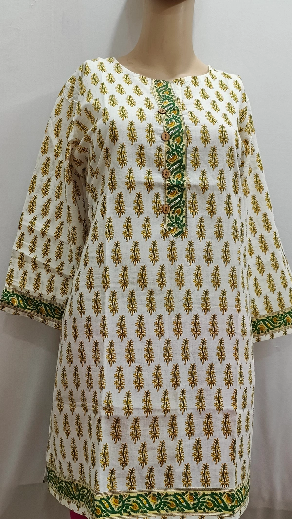 Beige Green Print Regular Kurti