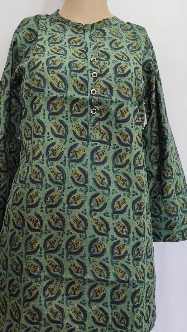 Dark Green Print Regular Kurti