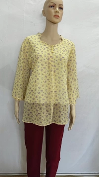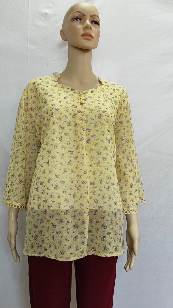Light Yellow Purple Floral Print Indo Western Top Synthetic
