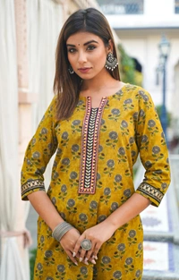 Our Kurta & Pant or Salwar or Palazzo style sets are the perfect blend of comfort and style. Made with premium quality cotton, these sets will keep you cool and comfortable all day long. The stylish patterns will make you stand out in any occasion, whether it's a formal event or a casual day out. The versatile kurta can be worn with our paired pants, or you can mix and match with your favorite pants to create a unique look that is truly your own. No matter how you wear it, our Kurta & Pant or Salwar or Palazzo style sets are the must-have addition to your wardrobe. So why wait? Get your hands on this stylish combo and steal the show! Please note, dupatta not included.