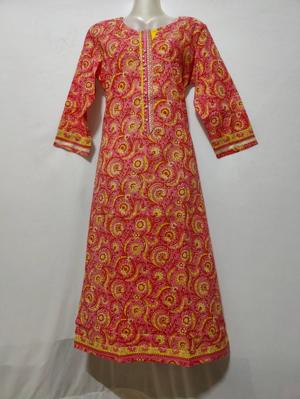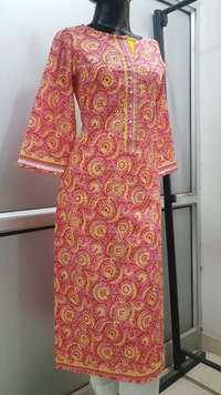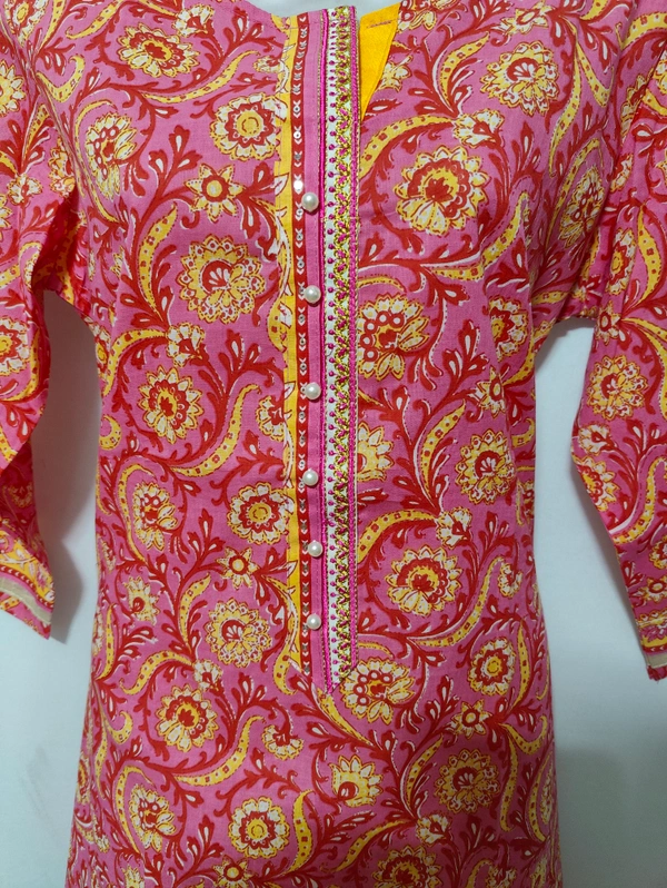 Pink Yellow Print Kurta