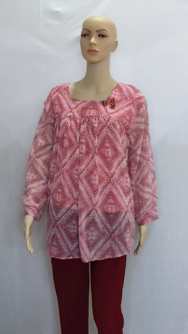 Ruby Print Diamond Print Indo Western Top Synthetic